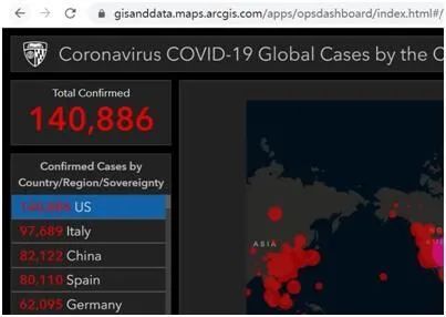 美国约翰斯•霍普金斯大学发布的最新数据显示,截至北京时间3月30日7时45分,美国累计新冠肺炎确诊病例超14万,达140886例,累计死亡病例2436例。