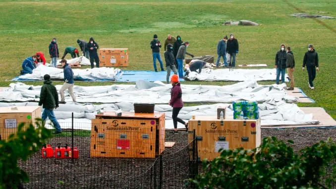 纽约市长德布拉西奥警告称,如果市民不遵守安全社交距离准则及不听从劝告,将会被罚款200至500美元不等。纽约市中央公园正在建设一处野战医院,收治新冠肺炎重症患者。该野战医院有68个床位,将于当地时间周二开始运营。