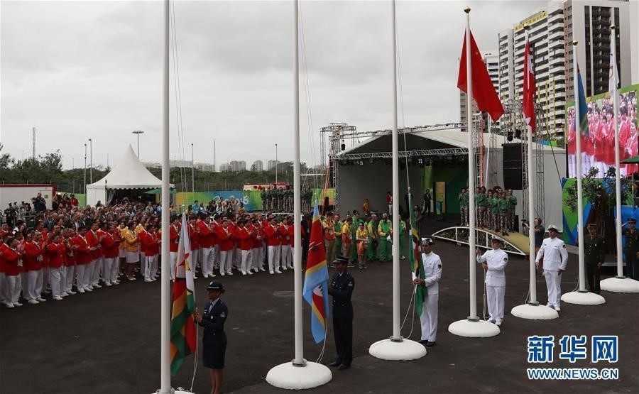 2016年8月3日,中国五星红旗在奥运村冉冉升起。 当日,中国体育代表团在里约奥运村举行升旗仪式。 新华社记者 任正来 摄