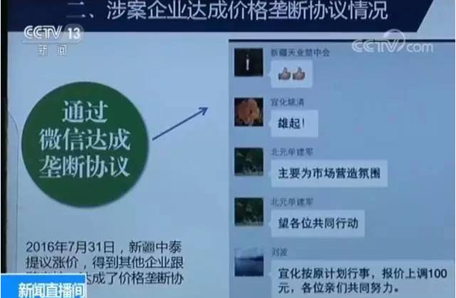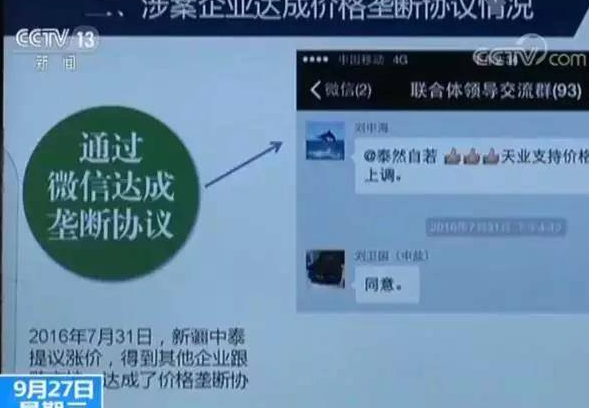 微信群参加的人员就是各家涉案企业的相关负责人,他们在微信群里交流价格信息,说今天你涨多少明天我涨多少,或者我们这18家企业,在下周共同涨多少。有些涉案企业甚至建议说把本群群名改成“一致行动调价群”,这就非常明显地揭露了他们想要调价的目的。