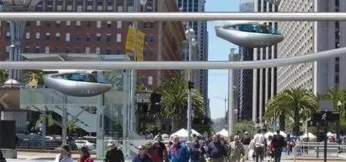 外表酷似胶囊的吊舱,依靠磁力、重力以及电力短脉冲,这些吊舱可以在半空中漂浮穿行,从而将地面交通的压力匀到空中。